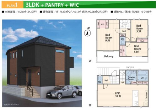 【1号棟】5,890万円 土地面積:112.8㎡ 建物面積:90.26㎡
