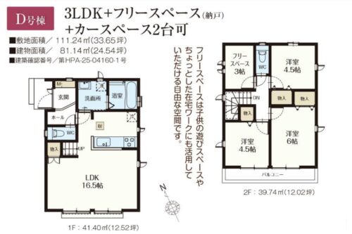 【D号棟】3,950万円 土地面積:111.24㎡ 建物面積:81.14㎡