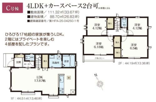 【C号棟】4,450万円 土地面積:111.32㎡ 建物面積:88.70㎡