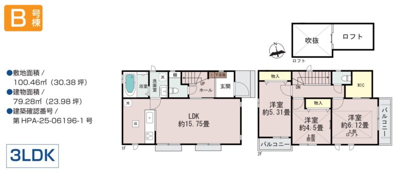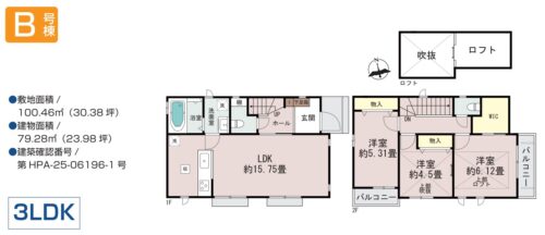 【B号棟】4,290万円 土地面積:100.46㎡ 建物面積:79.28㎡