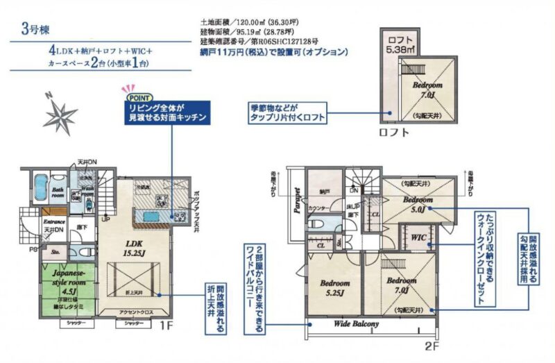 【3号棟】3,450万円 土地面積:120.00㎡ 建物面積:95.19㎡