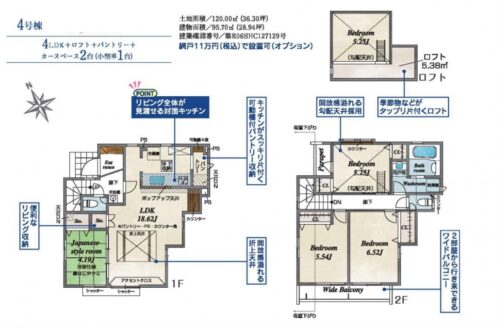 【4号棟】3,380万円 土地面積:120.00㎡ 建物面積:95.70㎡