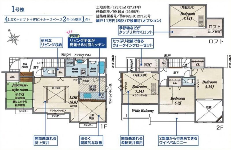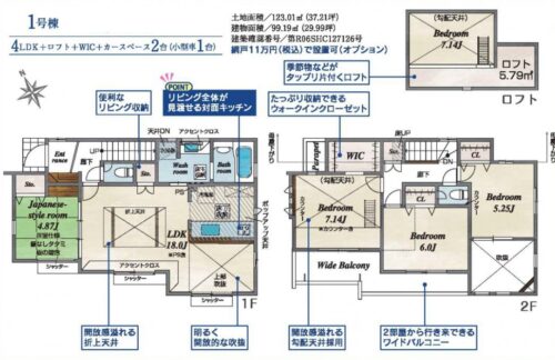 【1号棟】3,990万円 土地面積:123.01㎡ 建物面積:99.19㎡