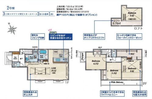 【2号棟】3,850万円 土地面積:123.01㎡ 建物面積:96.88㎡